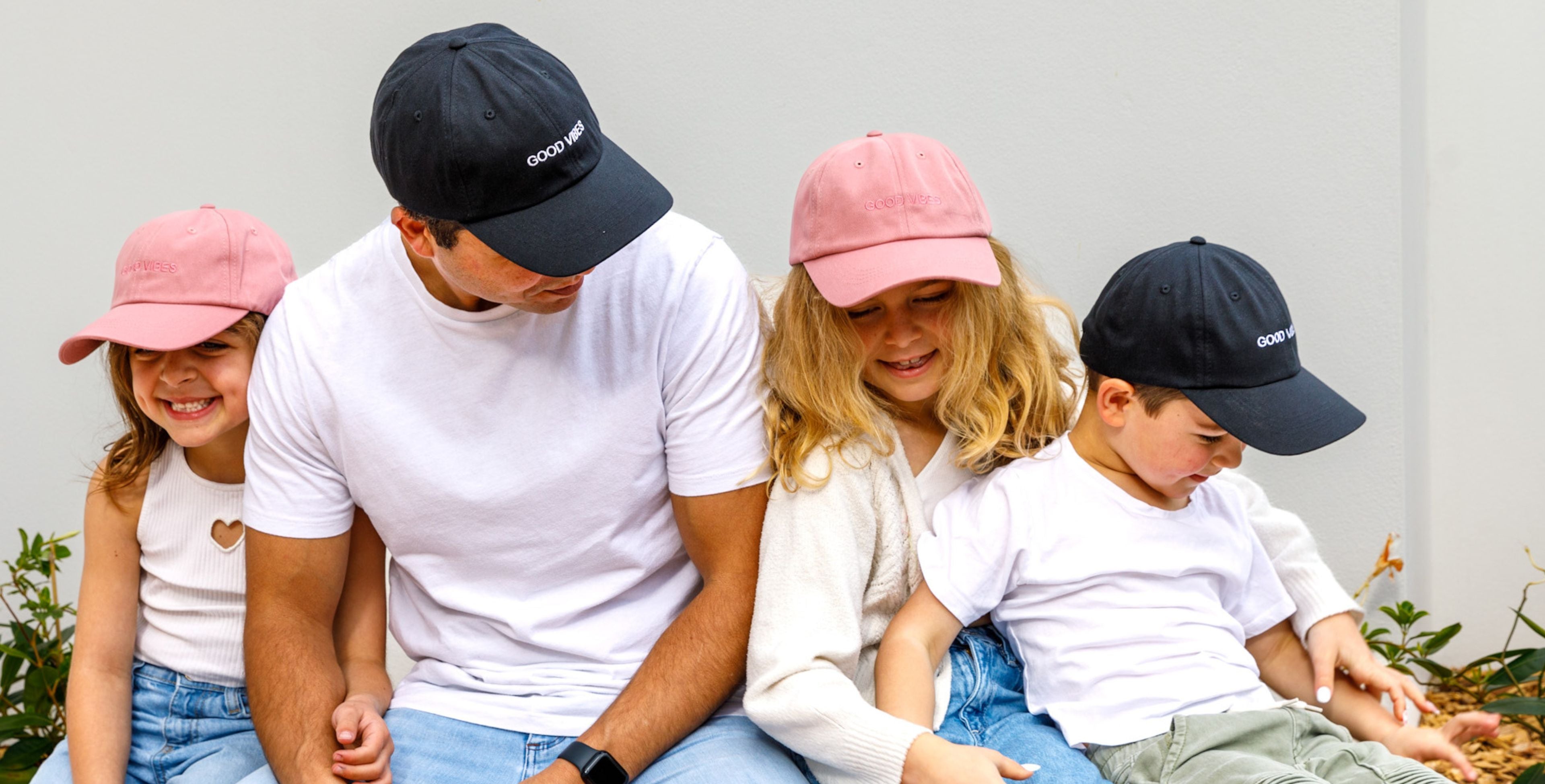 Bring some good vibes into your wardrobe with our Dusty Rose Good Vibes Cap. Also available in black! This dad-style cap is crafted from soft 100% cotton and has a relaxed, unstructured fit for optimal comfort. Available in dusty pink and black with sizes to fit the whole family. Match together and spread positive vibes!