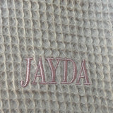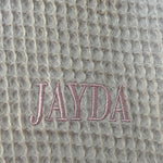 Introducing the ultimate cozy companion for bath time and beach days! Our hooded towel, crafted from 100% organic waffle cotton, is not just a towel; it's a soft, snuggly embrace that wraps you in comfort. Available in small, medium, and large sizes, it’s perfect for everyone in the family. Plus, you can personalise it with your initials embroidered, making it uniquely yours!