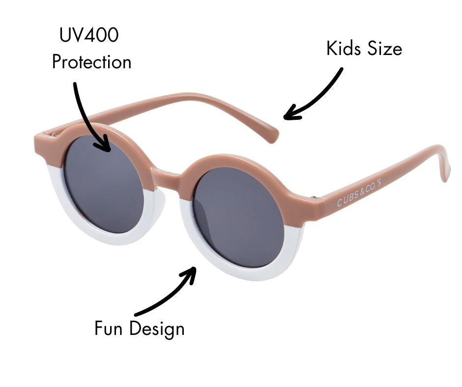 Cubs & Co has the cutest kids sunglasses collection all with UV400 protection. Large range of designs including pink leopard print, neutral tones plus more. Shop the kids sunglass range today.