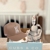 Celebrate new beginnings with the elegance of a thoughtfully curated Cubs & Co. Baby Hamper. Featuring a Choice of Personalised Hat, a Cozy Muslin with a modern sun burst design and a personalised name on a irresistibly cuddly bunny comforter.