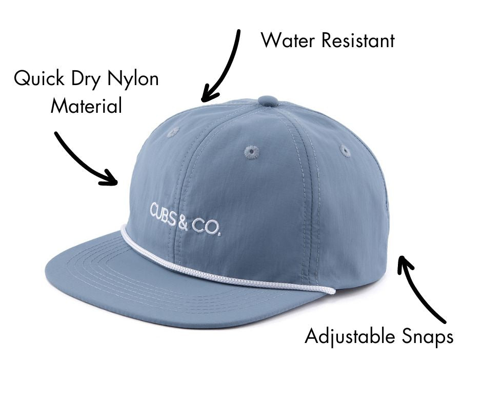 These LIMITED EDITION quick dry nylon snapback hats are the perfect summer hat. Also available in blue!